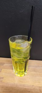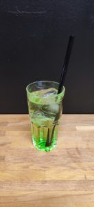 HK Sininen makkarakuutio, sipuli, kurkkusalaatti, jäävuorisalaatti, Thousand Island-kastike, sinappi, ketsuppi (G, L)